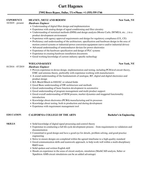 Hardware Engineer Resumes - Make a hardware engineer resume that gets interviews. Hardware engineers focus on designing, developing, and testing computer hardware components and systems. Use our writing guide and examples made by career experts — plus. Craft an exceptional hardware engineer. Hardware engineer resume example for 2024: