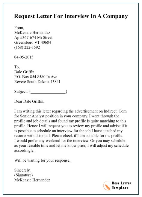 Interview Request Letter - An interview request letter is a professional letter that is written to seek permission for interview. My name is [your name], and i am writing to request an interview with you to. An interview request email is an email letter that human resources (hr) professionals and hiring managers send to. In this blog article, we will share several templates, examples,.
